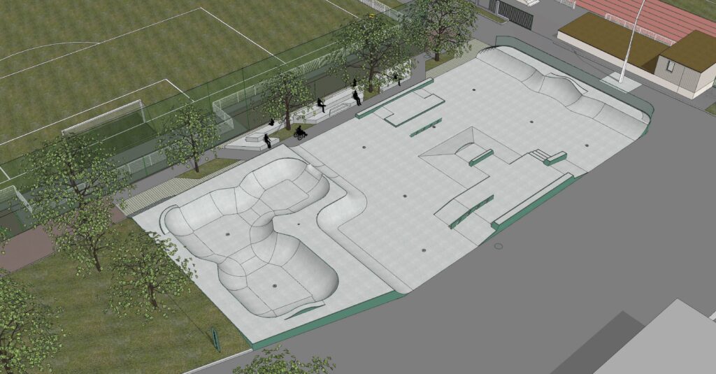 Des petites tribunes permettront de profiter du parc de glisse et des terrains de football voisins.